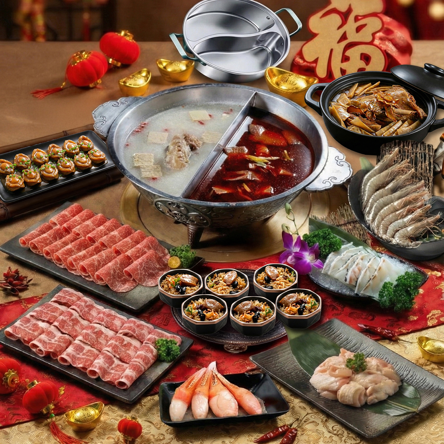 岩漿金馬流年盛歲宴6-8人優惠59折$6688┃免運宅配到府┃送限量高級訂製鴛鴦鍋┃送限量十大伴手禮-國宴年菜(鮑魚櫻花蝦米糕、麻油嫩筍燜鴨、口碑傳奇雞汁鮑魚)┃原價$11298